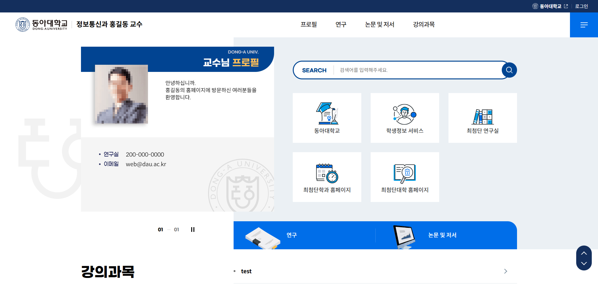 4. 동아대학교 메인 홈페이지 "교수소개"메뉴에 개인 홈페이지 링크 방법